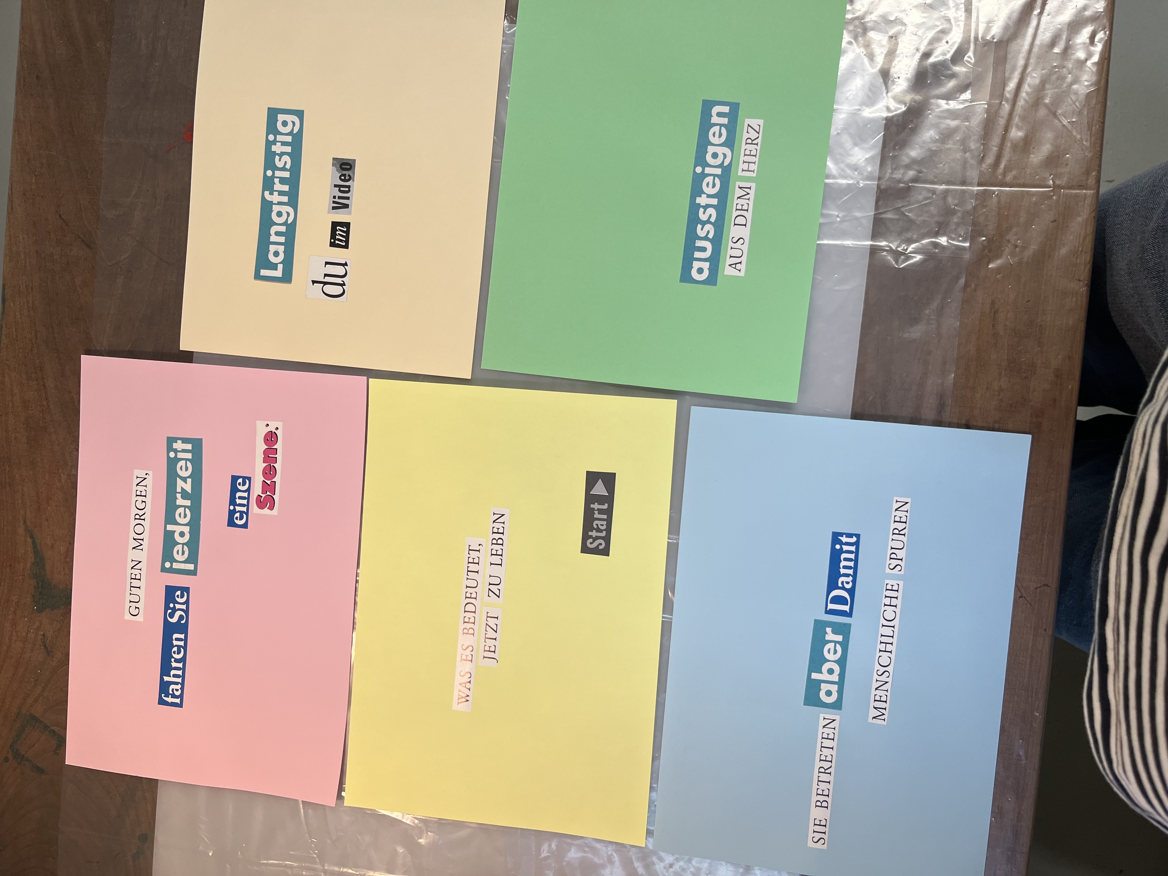 Es ist eine Sammlung von Alltäglichem. Du kannst es hier anschauen: Sammlung 45t Es gibt Absurdes und Unangenehmes: Auch verschiedene Nahrungsmittel sind vertreten: Und es gibt Aufforderungen: Es gibt auch einige Tiere (die gehören mir nicht):
